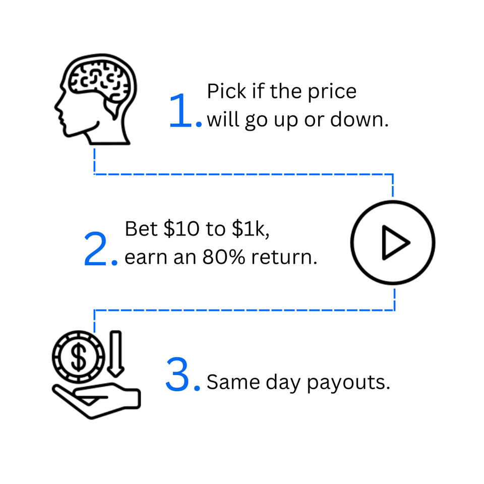 Predict if Prices will go Higher or Lower and Earn. Same Day Payouts, 80% ROI. Start with as little as $10.